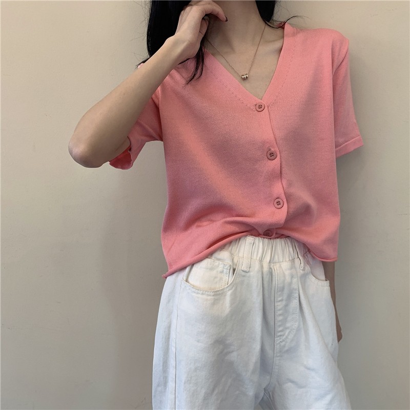20分鐘前氣質v領薄款打底針織衫,2020夏季新款女裝短款開衫上衣 - 【買一送一】任選2件,僅需NT$998