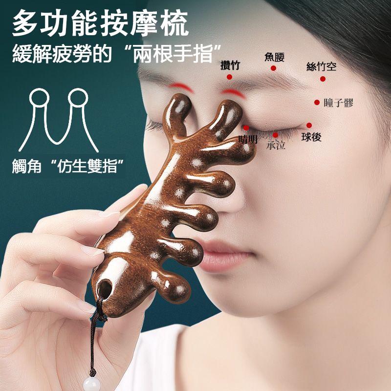 2分鐘前天然檀木美容經絡按摩梳 ◀頭臉按摩◀疏通經絡◀刮痧排毒 按摩穴位促進排毒,面部提拉緊緻 - 【緩解頭痛,按出健康】5入組HK$346